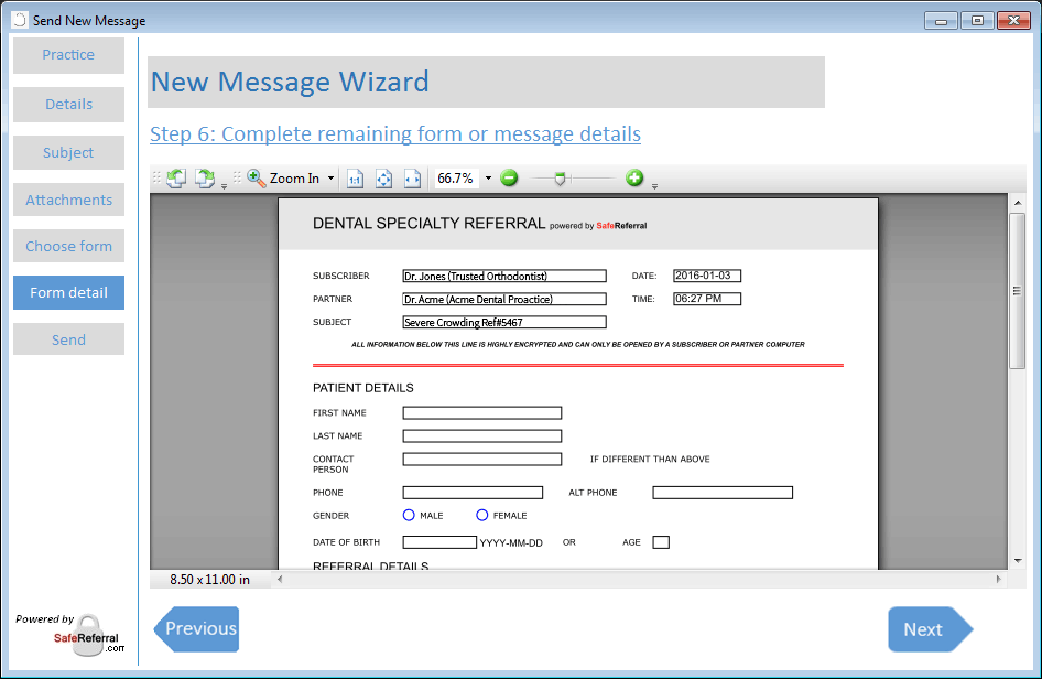 SafeReferral leaves you in control of how much or how little information is sent with each file and transfer.