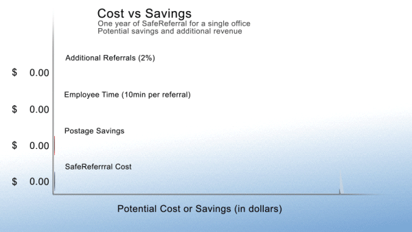 SafeReferral can save you money. Save hundreds of dollars in postage and wages1 by using SafeReferral to transfer files, receive referrals, and send letters. For as little as $2.39 per month2 you can connect to any office with SafeReferral and save the cost of postage, processing and administrative time.